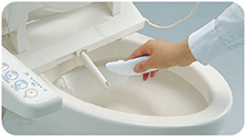 Nắp ngồi có thể tháo rời chỉ với một nút nhấn và bạn có thể dễ dàng làm sạch bồn cầu và Washlet. Ngay cả nắp và bệ ngồi cũng có thể tách rời và lắp đặt lại một cách dễ dàng đem đến hiệu quả vệ sinh cao hơn. Ngoài ra, chỉ với một nút nhấn, vòi rửa có thể di chuyển ra mà không phun nước, việc làm sạch vòi sẽ càng tiện lợi hơn. Vì thế, vệ sinh Washlet trở nên đơn giản hơn bao giờ hết.