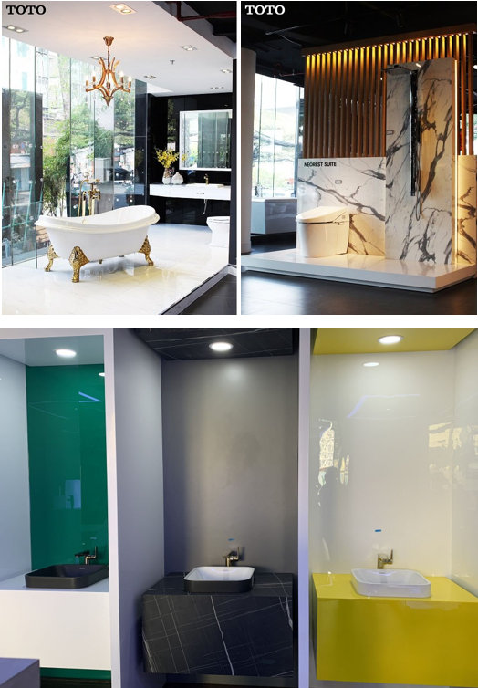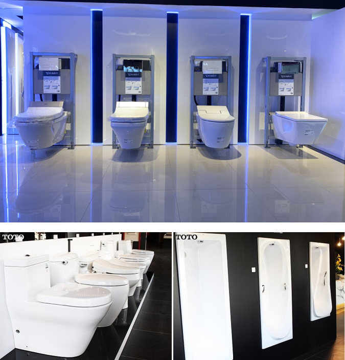 Hàng trưng bày thiết bị vệ sinh tại showroom