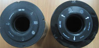 FG Wilson Genuine filter (right) Non-genuine filter (left) Note imperfect filter core |